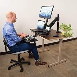 Height Adjustable Sit to Stand Desk Riser: Convert a traditional desk or table to create an ergonomic workstation Lever raises or lowers pneumatic arm for smooth height adjustment and attaches to left or right side of keyboard tray Single-arm mount for a 13 to 27 in. flat-panel display Max. weight capacity is 29 lb. 5-Year Limited Warranty