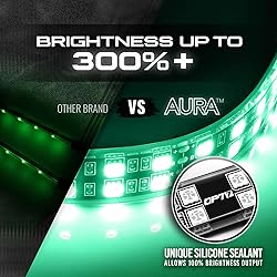 - Full Color Spectrum with SmartColor LEDsOur revolutionary LED design combines Micro-LEDs of all 3 primary colors into a single SMD. This allows a perfect mixture of color at the micro level, emitting a more pure, brilliant light color.Versatility meets FlexibilityAURA Lighting Strips are flexible enough to bend, twist and curve around any surface and provides heavy cover against any weather conditions.Hear It, See It, Feel It with SoundSyncSoundSync Mode illuminates your light strips to your music with finely tuned bass-activated technology. It's time to experience your music in a whole new light.True Plug Play Installation - 5 Minute SetupWith you in mind, we've simplified the installation process to a simple car charger adapter.Just plug it in and hit ON.Want to make it a cleaner install?Unique to OPT7, our kit also includes (3) different sized fuse adapters that allow you to plug your kit directly into your fuse box to ensure a more feature-rich, clean install.E-Z ProgrammingOnce installed, easily select the color and pattern you want with our two feature-rich E-Z Remote.One Touch Color SelectionAdvanced Color DimmingVariable Speed ControlMultiple Flashing ModesHardware Door Assist Courtesy White Lighting AURA Original Kit Included:1 x Hand Held Remote1 x Charger Power Adapter1 X AURA V1 Control Box4 x 12" Double LED Strips with Adhesive Back3 x Plug-n-Go Fuse Tap Connectors2 x 5ft + 2 x 10ft Light Strip Extension Wire (4PC)1 x 10ft Hardware Power Harness1 x Pack of Mounting Kit and Zip Ties