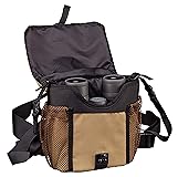 - Acomoda una variedad de binoculares de tamaño completo, pero los mantiene ajustados y seguros. Los bolsillos laterales de malla contienen llamadas, un lápiz para lentes y otros artículos pequeños que necesitan conveniencia de acceso rápido.