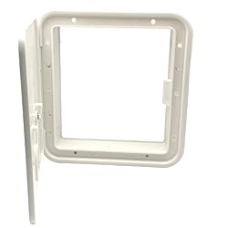 - It is a brand new electrical access / compartment door with thumb turn lock for Campers and RV's. This door is white (but it's not bright white) and is made with plastic. UV stabilizer is added so the color won't fade easily.