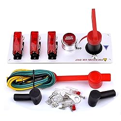 High quality Metal wire drawing face plate, durable; Universal for 12V Car Auto or Power Speediness & Racing Cars. LED indication light. Buttons and Switches: 1 x ON-OFF toggle switch + 1 x red engine start button + 3 x toggle switches for additional use; Come with the Relay to control the buttons of this item. Easy to turn off in an emergency from any angle, even with glove, will not turn off from vibration. This start ignition switch is not only suitable for professional racing cars but also avilable for vehicle DIY or other cars.as starting switch;storage battery switch;explosion-flashing; Chassis lamp; fog lamp; dome light; immediate electrical outage.