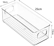 mDesign Plastic Long Stackable Storage Organizer Container, Organization Bin w/Handles for Kitchen, Pantry, Fridge, Freezer, Cabinet, Perfect to Hold Breast Milk - Ligne Collection - 4 Pack, Clear