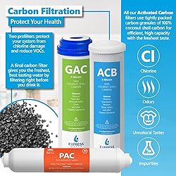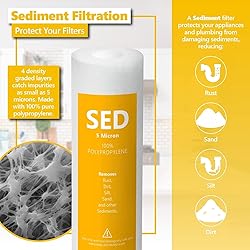 Reverse Osmosis Replacement Water Filters: Experience what water should taste like with the Express Water reverse osmosis water filtration system reducing up to 99.99% impurities. Water Purification System: Drink the healthiest water on Earth. All water filters are specially engineered to work together, producing the safest and best tasting water you’ll ever drink. Reverse Osmosis Filter Replacement Set: Each Express Water replacement filter is specially designed to work together and compliment each other. Get the cleanest water and the best value in your filtration Reverse Osmosis Membrane: The RO Membrane is specially designed with density graded layers of filtration to filter the hardest to reduce impurities like dissolved solids, microplastics, fluoride, Heavy Metals, and more. Pre-Carbon Filter: Activated Carbon Block and Granular Activated Carbon block water filters protect your system from chlorine damage and reduce VOCs. Post-Carbon Water Filter: As the final stage of filtration in your system, this activated carbon water filter reduces any remaining impurities while enhancing the flavor of drinking water. SED Water Filter: Keep the most damaging sediments out of your drinking water and protect your other filters from coarse impurities including rust, sand, dirt and silt.