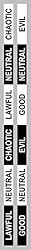 - Critsuccess Alignment Blue Dice Ring - Size 12. Useful for determining character alignment. Left Band: Lawful, Neutral, Chaotic Right Band: Good, Neutral, Evil