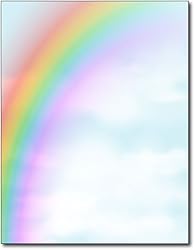 • Raimbow Background Stationery Paper by Desktop Publishing Supplies, Inc. is a simple and soothing paper. This design features a beautiful vibrant rainbow over soft white clouds in a blue sky. The design lends itself to spring or summer events. The design is sure to impress! This letterhead is made from an above average 28lb Bond paper stock and measures the standard 8 1/2" x 11" size. The design is featured on the front, while the back is plain white. Both sides of the paper are printable with your inkjet or laser printer or copier. 80 Sheets of Raimbow Stationery Paper per pack
