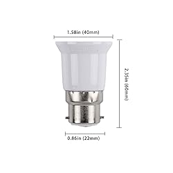 - Feature: ★ Transforms your B22 Socket to your E26/E27 Screw Socket. This allows you to choose more LED lights to adapt to your fixture or base, rather than replace you fixtures with a new one. ★ Suitable for LED, halogen, filament or CFL light bulb. ★ Voltage: Suit for All Voltage. ★ Easy to install. Simply screw the socket adapter into B22 type socket, and then screw in an E27/E26 bulb. ★ Strictly made with all the safety measure that passes through high quality standards with UL-listed. Worry free from potential danger at home. ★ Made of high-quality thermoplastic polymer (PBT) and copper, this adapter comes in a solid construction, high temperature resistant, corrosion resistant and anti-burning Specifications: Type: B22 to E26/E27 Color: white Material: PBT and copper Size: 4 x 6cm/1.58" x 2.38"(D*H) Suitable Environment: Indoor Use / Dry Outdoor Use Application: 1. For the bedroom, living room, conference room, kitchen, living room, hall, telephone booths, workshops and exhibitions, etc. 2. Architectural lighting, the communication lighting ,the city lighting in the families and in the Public decorative lighting.