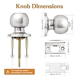 Round Privacy Door Knob : Privacy door knobs with modern nickel finish. Confirm with ANSI Grade 3, Exceeds 200,000 cycles. Steel Adjustable Latch : It has adjustable universal latch - 2-3/8" or 2-3/4", Fits doors 1-1/4 inch to 1-3/4 inch Privacy Function : The latch bolt can be locked by thumb turn button on the inside knob. An emergency release tool can unlock the door from the outside Easy Intallation : Easy to install with all accessories included. The easy installation makes for a one-person project. It fits both right and left handled doors. Dimensions : Knob Diameter: 2.09"(53mm) , Rosette Diameter: 2.56"(65mm). Note : The square plate of the latch is unremovable