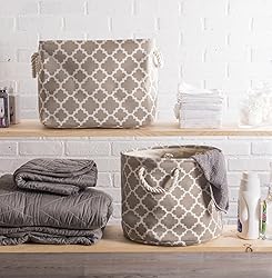 Polyester Blend Imported LARGE BIN: 17.75 x 12 x 15" (L x W x H) with O-ring and cardboard bottom to reinforce shape and give structure, simply collapse bin and store when not in use. Holds up to approximately 20 lbs (9 kg) STURDY ROPE HANDLE: Reinforced cotton rope handles make for easy and comfortable transporting and sturdy bottom retains shape after each use; Wipe clean with damp sponge or cloth STYLISH FOR ANY ENVIROMENT: These bins are available in fun, trendy and adorable styles and colors, a perfect addition to a nursery, home office, craft room, or to add a splash of color to any room while also being functional ORGANIZATIONAL SOLUTION FOR THE HOME: Find a place for knick knacks, children's' toys, magazines, craft supplies, and more with these sturdy, everyday bins that can be tucked away in closets, side tables, under beds, in storage cubes, or on a shelf MORE STORAGE OPTIONS: DII offers delightful Home & Kitchen products including a large selection of table linens, aprons, and dishtowels but for more storage options click the DII link at the top of the page to start exploring our other collections