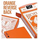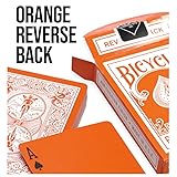 The newest color combination is here! These orange reversed-backed cards are officially printed by the U.S. Playing Card Company with Magic Makers and can be used in any number of card routines. With this vivid orange deck you receive a BONUS double-face card double-backed card ONE NORMAL BICYCLE JOKER and two different Ace of Spades cards. These cards have a vibrant orange color that bleeds all the way to the edges! This deck features a reversed back where the official back design is colored white on a vivid orange. Impress your friends with the legendary smoothness of the air cushioned finish of the Bicycle playing cards and a very visually stimulating experience.