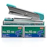 The Max HD-10 Stapler Set includes a heavy-duty stapler and 2 boxes (2000) of staples, providing everything you need for your stapling needs The stapler can handle up to 15 sheets of normal paper at once, making it perfect for office, school or home use The stapler is made from durable materials and is built to last, ensuring that you won't have to replace it after just a few uses The included staples are compatible with the Max HD-10 Stapler, and each box contains 2000 staples, which is enough to handle all your stapling needs for a long time The stapler has a sleek design, comfortable grip and jam-free guarantee, making it easy to use and handle. Perfect for professional or personal use. Color may vary.