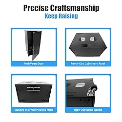 - Raising Electronics 18U Server Cabinet Enclosure - Solid, Versatile, and High-Quality Construction; Organize and Secure your Rack Mount Equipment. This high-quality 18U rack mount server cabinet is designed to fit 19” standard equipment. It provides stable support for your equipment with a rail depth of 18”. The top has pre-drilled screw holes (4”x4”) designed for users who want to mount top fan units and save rack space for equipment mounting. This cabinet has a meshed front door, offering great airflow for passive cooling to prevent overheating. Heavy-duty caster wheels under the rack provide ease of mobility around your office, studio, or even your home. Additionally, we provide 5 year technical support! Features: 1. Flat-packed unassembled 18U rack enclosure with lockable mesh door 2. Simple and modern vented mesh door design with a 220LB weight capacity 3. High-grade cold rolled steel construction and we provide a 5-year technical support! 4. Unit size (casters on): 37”H x 22”W x 24”D (18” post-to-post install depth) 5. Inner space (front door to back panel): 22.25” Specifications: - Color: Advanced Black - Material: Cold Rolled Steel - Self Dimension: W: 22" D:24" H: 37” - Rack Space: 18U / 18RU - Weight Capacity: 220LB Shipping Dimensions: - 72LB 37x26x10