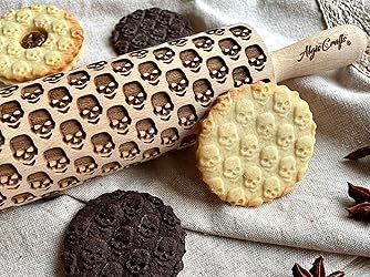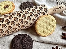 SKULL Rolling Pin. Embossing rolling pin with SKULL PATTERN Embossed skull cookies for HALLOWEEN. Wooden Laser Cut Rolling Pin for Halloween cookies, play dough, salt dough by Algis Crafts