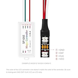 WIDE COMPATIBILITY. Support almost Smart LED IC ,one-wire or two-wire LED driver IC, such as FCOB RGB WS2811 IC, WS2811 SMD,WS2812B,WS2813,WS2814,WS2815, WS2801, SK6812, SK6812-RGBW, LPD6803, LPD8806, APA102, APA105, TM1804, TM1814, TM1914, TM1913, P9813, INK1003, UCS1903, DMX512 Convenient. IOS and Android APP control via Bluetooth 4.0 or later version. Long control distance, convenient to use. Support IOS 8.0 and Android 4.4 or later version. Your smart Phone should support Bluetooth 4.0 or later version. Rich color modes. Come with 200 kinds of color change modes, auto mode and static color mode, which are vivid and beautiful. Save user setting automatically when power off. Brightness is adjustable. Safe. DC5V DC12V DC24V wide working voltage, preventing reverse connection of power supply, protecting LED light and controller very well. DC5V WS2812B LED strip, please only use DC5V power adapter. 5.5mmx2.1mm DC power jack Warranty . If it does't work , please contact us , we will help you to solve the problem.May be you will connect the wrong wire or the wire is loose . Color calibration. When the app color is inconsistent with the color of the LED strip, where green is blue and blue is green ,You can use the APP to calibrate the colors to make them consistent.6 color sequences, RGB, RBG, BRG, BGR, GRB, GBR, select one of them for calibration Insufficient power supply will cause the controller to lose control, the color of the LED strip is frozen, Bluetooth is disconnected . Please note : When you Light up 1 color(red or green or blue or pure white) 0.1W/LED . 2 colors (red+green) 0.2W/LED , 3 colors (red+green+blue=mixed white) 0.3W/LED.If you don't know which power supply can be used for your LED project, you can email us It is not recommended to light up the full brightness white light for a long time, because the main function of the addressable RGB IC light strip or fairy string is chasing rainbow effects .