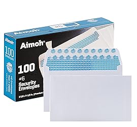 #6 3/4 SECURITY TINTED SELF SEAL ENVELOPES; want the very best in secure, security-tinted envelopes with a super strong self-seal? Aimoh's No. 6 3/4 Security Envelopes combine durable, printer-compatible paper, a security tinted design and strong self-seal QUICK-SEAL for the best #6 3/4 security self-seal envelopes on the market SUPER SECURITY TINT PATTERN; #6 3 / 4 envelopes designed with a secure, security tint-pattern to protect contents and sensitive information, perfect for ultra-secure personal mailing while protecting sensitive information 100 ENVELOPE PACK; these envelopes are manufactured with a WINDOW-LESS front panel for the perfect choice for Personal Checks, home offices and everyday use, No. 6 3/4 Security Envelopes are provided in a 100-envelope pack QUICK-SEAL CLOSURE; Aimoh's #6 3-4 envelopes are designed with an ultra strong SELF-SEAL adhesive strip to create a full, super secure seal across each envelope's width that won't easily open or tear, ideal for mailing Smaller & Personal documents PREMIUM 24LB PAPER: Manufactured from premium quality 24lb white sturdy paper creating a super high quality feel, perfect for personal greetings and letters. Measuring 3.625 x 6.5 Inches