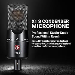 C𝗼𝗺𝗽𝗹𝗲𝘁𝗲 R𝗲𝗰𝗼𝗿𝗱𝗶𝗻𝗴 C𝗵a𝗶𝗻 – This comprehensive condenser microphone bundle provides everything you need to start recording right away, delivering the isolation, clarity, and control required for clean, professional results from day one Ha𝗻𝗱-C𝗿a𝗳𝘁𝗲𝗱 C𝗼𝗻𝗱𝗲𝗻𝘀𝗲𝗿 Ca𝗽𝘀𝘂𝗹𝗲 – Each X1 S 1” large diaphragm condenser capsule is hand-crafted and individually tuned in-house by sE’s expert technicians. This professional condenser microphone captures vocals and instruments with precision, depth, and clarity worthy of high-end studio microphones C𝗹𝗲a𝗻𝗹𝘆 Ha𝗻𝗱𝗹𝗲𝘀 E𝘅𝘁𝗿𝗲𝗺𝗲 SPL – With a maximum SPL of 160 dB and exceptional dynamic range, the X1 S music production microphone captures drums, amps, and powerful vocals without distortion, maintaining clean, accurate sound even at high volumes Pa𝗱 & F𝗶𝗹𝘁𝗲𝗿 S𝘄𝗶𝘁𝗰𝗵𝗲𝘀 𝗳𝗼𝗿 V𝗲𝗿𝘀a𝘁𝗶𝗹𝗲 R𝗲𝗰𝗼𝗿𝗱𝗶𝗻𝗴 – The X1 S music and podcast microphone includes -10 dB and -20 dB pads and switchable low-cut filters at 80 Hz and 160 Hz to control rumble and proximity effect at the source M𝗶𝗰𝗿𝗼𝗽𝗵𝗼𝗻𝗲 R𝗲𝗳𝗹𝗲𝗰𝘁𝗶𝗼𝗻 F𝗶𝗹𝘁𝗲𝗿 – Perfect for voice-over, video editing, and podcast production, the RF-X mic isolation shield creates a controlled acoustic space that reduces unwanted room reflections and ambient noise. Compact, durable, and easy to mount, it delivers clear, focused recordings anywhere F𝗼𝘂𝗿-La𝘆𝗲𝗿 A𝗰𝗼𝘂𝘀𝘁𝗶𝗰 S𝗵𝗶𝗲𝗹𝗱 – The RF-X microphone shield combines a vented composite panel, wool fabric, air gap, and acoustic foam layers to evenly attenuate across the spectrum and deliver a “dry,” clean recording instead of muddy room reflections I𝘀𝗼𝗹a𝘁𝗶𝗼𝗻 Pa𝗰𝗸 𝘄𝗶𝘁𝗵 M𝗲𝘁a𝗹 P𝗼𝗽 F𝗶𝗹𝘁𝗲𝗿 – The quick-release shock mount reduces vibration and handling noise, while the adjustable metal pop filter controls plosives for clean vocal capture. Includes a 3-meter XLR cable for a reliable, studio-ready connection