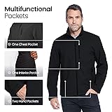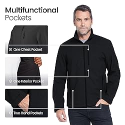 All-Weather Protection: This water-resistant jacket for men is crafted from a durable polyester/spandex blend, making it one of the top weatherproof jackets for men. It shields against wind and rain, offering reliable protection in any season, while the soft brushed polyester lining ensures added comfort for colder days. Active Comfort with Stretch: Designed for movement, the softshell jacket features a slight stretch, ideal for outdoor activities like running, hiking, or yard work. Its spandex blend allows the jacket to move with your body, ensuring flexibility and ease during any adventure. For a more fitted look, consider sizing down. Built for Work & Durability: Engineered for tough job sites, this midweight soft shell jacket offers durability for outdoor laborers, construction workers, and landscapers. Its water-resistant and windproof design keeps you dry and comfortable throughout long shifts, no matter the weather. Customizable Fit & Full Protection: Fully zips up to the stand collar, providing neck protection against cold and wind. Adjustable velcro cuffs and waist drawcords offer a customizable fit and additional protection from the elements, allowing you to adapt the jacket for various conditions. Versatile Year-Round Wear: This mid-weight waterproof men's jacket is perfect for year-round use. It insulates in colder weather by retaining your body heat and is breathable enough to prevent overheating in milder temperatures. Whether it's a chilly summer night or a cold winter day, this jacket has you covered.