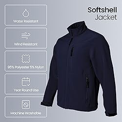 All-Weather Protection: This water-resistant jacket for men is crafted from a durable polyester/spandex blend, making it one of the top weatherproof jackets for men. It shields against wind and rain, offering reliable protection in any season, while the soft brushed polyester lining ensures added comfort for colder days. Active Comfort with Stretch: Designed for movement, the softshell jacket features a slight stretch, ideal for outdoor activities like running, hiking, or yard work. Its spandex blend allows the jacket to move with your body, ensuring flexibility and ease during any adventure. For a more fitted look, consider sizing down. Built for Work & Durability: Engineered for tough job sites, this midweight soft shell jacket offers durability for outdoor laborers, construction workers, and landscapers. Its water-resistant and windproof design keeps you dry and comfortable throughout long shifts, no matter the weather. Customizable Fit & Full Protection: Fully zips up to the stand collar, providing neck protection against cold and wind. Adjustable velcro cuffs and waist drawcords offer a customizable fit and additional protection from the elements, allowing you to adapt the jacket for various conditions. Versatile Year-Round Wear: This mid-weight waterproof men's jacket is perfect for year-round use. It insulates in colder weather by retaining your body heat and is breathable enough to prevent overheating in milder temperatures. Whether it's a chilly summer night or a cold winter day, this jacket has you covered.