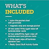 WHAT'S INCLUDED: The All About Letters Pocket Chart includes: a nylon Pocket Chart (14"" x 37"") with grommets for hanging and a magnetic strip for use on magnetic surfaces; 26 two-sided laminated upp TEACH LETTER RECOGNITION AND SOUND CORRESPONDENCE: You'll see your young learners get excited about learning the upper- and lowercase letters and demonstrating basic knowledge of one-to-one letter-sou INTRODUCE BEGINNING LETTERS WITH FAMILIAR WORDS AND PICTURES: It's easy to teach alphabet letters and sound relationships with four Word/Picture Cards for each letter including two long and two short EXPAND YOUR LESSONS WITH DRY ERASE MARKERS: The Write Again wipe-off laminated Cards make using dry erase markers to underline, circle, star, and label an easy way to feature letter, sound, and word a PERFECT FOR SMALL SPACES: The compact All About Letters pocket chart fits anywhere! Perfect for classrooms with limited display space, homeschool areas, or to work on letters at home, the chart comes