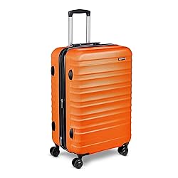 Amazon Basics 26" Hardside Medium Checked Luggage, Expandable Hardshell Suitcase with Wheels, Scratch-Resistant Surface, Four Multi-directional Wheels, Orange