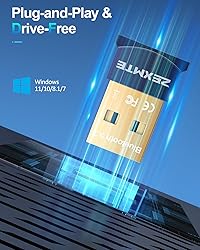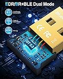 √Bluetooth Adapter 5.3------Applies the latest Bluetooth 5.3 chipset supports dual mode (BR/EDR + BLE). Can link BR/EDR and BLE at the same time. Using low latency technology greatly reduces the power consumption of Bluetooth(BLE). Enhance anti-interference ability and stability, decrease the transmission efficiency loss caused by the interference of the 2.4 GHz frequency band and low the possibility of signal interruption, and it is backward compatible with Bluetooth V5.0/4.2 LE/4.0/2.1 √Faster Transmission Farther Coverage------The Bluetooth USB adapter supports the Enhanced Data Rate (EDR) technology, which greatly improves the transmission rate, giving you a fast and lag-free wireless data connection between your computer and Bluetooth devices. Easily enjoys music, transferring files, and entertainment during work. With the more advanced technology, Our USB Bluetooth adapter transmission distance reaches 30m/98FT in open place, which can cover more distance space. √Plug-and-play & Drive-Free------Just plug it into your device and start using it right away without any drivers or software installation for Windows 11/10/8.1. Incredibly easy and convenient to use. Please note that Windows7 system requires manual driver installation(Go to the official website or contact us via amazon message). √High Compatibility------The PC Bluetooth adapter works with 32/64-bit Windows 11/10/8.1/7. Supporting up to 7 different types of devices to connect at the same time, but notice that same type of Bluetooth device can only be paired with a connection to use. Not applicable for Mac OS, Linux, TV, or Car Stereo. Please check the operating system before purchasing. √Mini Size Design------Ultra sleek design allows you to leave it on laptop or desktop, you can keep our Bluetooth dongle there and no need to remove it, it seamlessly gets plugged into a laptop without blocking the surrounding USB port. The indicator light can clearly show the current pairing status.