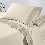 Modern Threads 4 Piece Microfiber Sheet Set – Soft Cooling Bed Sheets with Crochet Lace – Deep Pocket, Wrinkle Free, Breathable, Hotel Luxury Bedding, Beige, Queen
