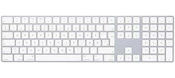 - Magic Keyboard with Numeric Keypad features an extended layout, with document navigation controls for quick scrolling and full-size arrow keys for gaming. A scissor mechanism beneath each key allows for increased stability, while optimized key travel and a low profile provide a comfortable and precise typing experience. The numeric keypad is also great for spreadsheets and finance applications. And the built-in, rechargeable battery is incredibly long-lasting, powering your keyboard for about a month or more between charges.