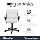 Amazon Basics Office Task Chair with Adjustable Height, 360° Swivel, Padded Armrests, Mid-Back, 275 Pound Capacity, BIFMA Certified, 24.2"D x 24"W x 38.6"H, White Faux Leather