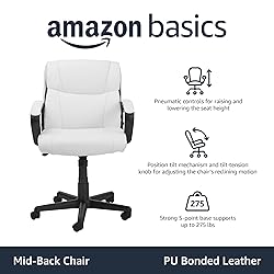 - Amazon Basics Padded Office Desk Chair with Armrests, Adjustable Height/Tilt, 360-Degree Swivel, Caster Wheels, 275Lb Capacity - White