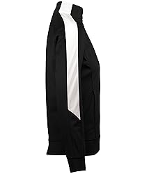 100% Polyester Imported Closure: Zipper Heavyweight 100% polyester matte brushed tricot * Ladies' fit * Heat sealed label * Center front zipper * Contrast color inserts on collar and shoulder * Set-in sleeves * Front seam pockets * Self-fabric cuffs * Open bottom * Machine washable * Individually polybagged.