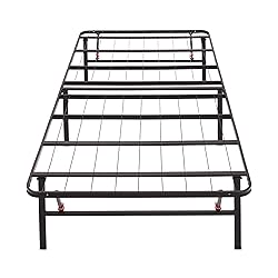 STURDY SUPPORT: This twin bed frame, with no box spring needed, provides a noise-free, supportive foundation. The twin size platform bed frame allows your mattress to stay in place comfortably. DURABLE DESIGN: This twin size bed frame metal crafted from durable steel, has reliable strength and longevity EASY SETUP: This twin bed frame with storage offers a hassle-free, tool-free setup. With the folding mechanism, this twin size bed frame is easy to store or move through doorways AMPLE STORAGE: The metal twin bed frame allows you to maximize space with 13 inches of vertical clearance and convenient under-bed storage IMPRESSIVE WEIGHT CAPACITY: Twin size supports 350 lbs; Full, Queen, King & California King sizes hold up to 700 lbs total (350 lbs per person max for all sizes)