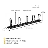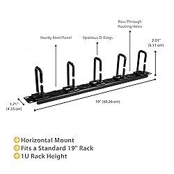 SAVE RACK SPACE: This 1U 19" Server/network rack mountable cable management organizer allows for organizing/routing cables within your rack; Low profile design leaving more room for equipment MANAGE CABLES AND EQUIPMENT: D-Ring Hook Passthrough holes (with inner/outer diameters of 1.18/1.02in [26/30mm]) provide a clean and protected exit from the rack and keep bundles manageable WIDE COMPATABILITY: Horizontal cable/wire/cord manager can be fit into any standard 19" 2 post or 4 post rack, and is easily mounted using the included M5 cage nuts and screws TECH SPECS: 1U 19" Rack cable organizer | 4 x cable pass-through | 5x routing loops | Steel construction | Mounting hardware included | 4" depth with hooks installed | EIA/ECA-310-E compliant