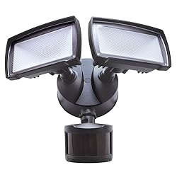 Good Earth Lighting Two-Head LED Motion Activated Security Light - Bright White Light - 50,000 Hours Lamp Life - Direct Wire Installation - Energy Star - Bronze