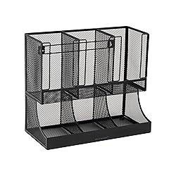 - Streamlined Storage for Office Breakrooms and Shared SpacesStreamline your office breakroom or coffee station with this multipurpose countertop organizer designed to keep cups and beverage essentials neatly arranged and easy to access. Featuring a two-tier layout with six compartments, it provides dedicated storage for cups, lids, stirrers, creamers, and condiment packets in shared environments.The open design allows for quick visibility and efficient restocking, making it ideal for office kitchens, conference rooms, reception areas, and hospitality spaces. Constructed from durable metal mesh, the organizer is built for daily use while maintaining a clean, professional appearance.Non-slip rubber pads on the base help keep the organizer securely in place on countertops and shelves. Beyond the breakroom, it can also be used as a desktop or countertop organizer for frequently used items in shared spaces.