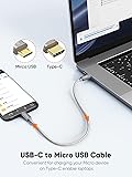 Fast Charging and Data Transfer: CableCreation USB C to Micro USB Cable connects a computer with a USB-C port to a smartphone, tablet, digital camera or legacy USB peripheral device with Micro-USB port; connects also a Type C phone which supports OTG function to a Micro USB phone for data or charge. Support power output up to 5V, 2.4Amp; Data transfer rate up to 480 Mbps. NOTE: This is USB-C to Micro-USB 2.0 cable instead of USB-C to USB-C cable! It does NOT fit regular USB-A Aluminum Alloy Shell & Cotton Braided Jacket: This usb c to micro usb is made of high quality materials, gold-plated connectors, aluminum alloy shell, cotton braided jacket, 10000+ bend life, micro usb to usb c provides more durability and higher performance Type C Compatibility: USB-C is the Host side, compatible with DJI Mavic Air 2, DJI Mini 3, USB-C wall charger, MacBook Pro 16" 15" 13", 12" retina Macbook, MacBook Air, iPad Pro 2018/2020, iMac 2017, iMac Pro, Surface Go, Surface Book 2, Surface Pro, Chromebook Pixel, Ideapad 320S, XPS 13/15, 7 Pro/ 7/ 6/ 5/ 5T/ 3/ 3T, Galaxy S22/S22 Ultra/S20/S20+/S20 Ultra/S10/S10+/S9/S9+/S8/S8+, Note 10/9/8, G6 V20 V30, Pixel 3/ 3XL/2/ 2XL, P20/P30/Mate 10 Pro, 8/ 9/ Mix/ Mix 2/ Mix 3, etc Micro USB Compatibility: Micro USB male is Device side, compatible with Android Micro USB smartphones, tablets, bluetooth earphones, MP3 players, cameras, hard drives, e-readers, FiiO K1, FiiO Q1 Mark II, FiiO E18 DAC amp, external batteries, PS4 game consoles, Xbox one controller, Walabot for charging or data syncing. Please NOTE: the usb-c to micro usb cable is NOT compatible with DJI controller & FiiO Q5 What You'll Get: 1x CableCreation Type C to Micro USB cable. CableCreation offers 24-Month product replacement warranty for all Cables, backed by friendly customer service