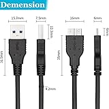 ⚡️FUNCTION: USB 3.0 to Micro B cable, used for data transmission for your external hard drive or charging your devices. Super-speed data transfer rate up to 5 Gbps and charge speed up to 3A,which can save you lots of time. ⚡️NICE HARD DRIVE PARTNER: 1-FT (0.3M,2-Pack) USB 3.0 A shorter cable help you easily carry it in your hard disk box or pouch. ⚡️DURABILITY: Combined with bare copper conductors, foil & braid shielding provides superior usb 3.0 cable performance, error-free data transmission, and fast charging speed. ⚡️10x FASTER TECHNOLOGY: Premium Micro USB 3.0 cord engineered with molded strain relief connectors for durability and grip treads for easy plugging and unplugging. High data transfer speed up to 5 Gbps, 10x faster than USB 2.0 ensures future-proof and a longer service time. ⚡️UNIVERSAL COMPATIBILITY: Widely Support Samsung Galaxy S5, Galaxy Note 3, Galaxy Note Pro 12.2, and portable USB 3.0 external hard drives including Toshiba Canvio, Seagate FreeAgent, and Western Digital (WD) My Passport and Elements hard drives, etc.
