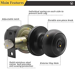 Probrico Black Entry with Key Door Lockset Knobs Flat Ball Keyed Entrance Lock Knobs 1 Pack