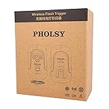 - Features: The PHOLSY wireless flash trigger a simple way to use off-camera flash. The transmitter's tilting joint allows it to be mounted vertically or horizontally onto your camera's hot shoe. 8 different channels let you trigger only chosen specific receivers, or an "all channels" button will trigger all receivers simultaneously. The is a versatile, reliable remote control kit that will trigger off-camera flash units and studio lights from up to 650'/200m away. The 2.4 GHz frequency provides reduced radio interference and an extended range without the need for line-of-sight alignment as the radio waves will pass through some walls, windows, and floors. An included 3.5 to 3.5mm sync cable connects the trigger to a studio flash. A 3.5mm to PC plug adapter is also included for flashes with a 1/4" mono plug socket. A hot shoe on the trigger allows for mounting the flash directly to the trigger. Mount the trigger to any 1/4"-20 threaded stud or standard hot shoe. A carrying pouch with an external and internal pocket protects your transmitter and receiver when not in use. Two lanyards allow you to hang the transmitter and receiver from light stands or other equipment. Dimensions: Transmitter: 104 x 50 x 35 mm, Receiver: 88 x 50 x 40 mm Weight: Transmitter: 62 g, Receiver: 61 g Compatiable Cameras: Compatible with Canon, Nikon, Sony (Metal Hot shoe), Olympus, Panasonic, Pentax, Fuji, Samsung cameras and other camera with ISO hot shoe Compatiable Flashes: Flashes with shot shoe (except Sony flashes) and flash/studio lights with 3.5mm/6.3mm port.