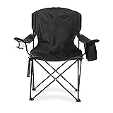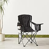 COMFORTABLE SEATING: Enjoy the outdoors with this large folding camp chair that features a lightly cushioned seat and back CONVENIENT BEVERAGE STORAGE: Keep refreshments handy in this camping chair's beverage cooler pouch, which holds up to four, 12-ounce cans BUILT-IN CUP HOLDER: Our portable camp chairs include a built-in cup holder for open drinks, plus a side pocket for essentials like sunscreen and snacks DURABLE AND STRONG: This folding camp chair's heavy duty steel frame provides reliable strength EASY TRANSPORTATION: This large camping chair includes a carrying bag with a shoulder strap for easy carrying and storage