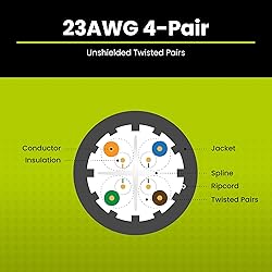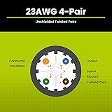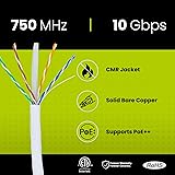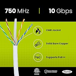 [Extreme Performance] Supports 1 Gigabit & 10 Gigabit Ethernet up to 328 ft. Bandwidth tested up to 750 MHz for demanding applications like Full HD & 4K streaming, data servers, PC gaming, and business networking. [Quality Guaranteed] 23AWG solid bare copper cable ensures superior conductivity, signal strength, and durability. Supports Power over Ethernet: PoE/PoE+/PoE++ (IEEE 802.3af/at/bt) 4PPoE up to 100W. [Versatile] Riser-rated PVC jacket is perfect for vertical runs—between floors, in-wall, and non-plenum spaces. A solid choice for offices, home networks, or data centers needing high-speed, reliable Ethernet. [Easy To Use] Comes on a tangle-free, easy-pull reel with sequential 2ft markings on the ethernet cable for accurate measuring. Designed for indoor use to prevent fires from spreading from floor to floor in vertical installations with mild flame retardance. [✓ Field Tested, Customer Approved] Our data cables have been tested with a Fluke DSX-8000 Versiv CableAnalyzer and are in compliance with ANSI/TIA 568.2-E standards, RoHS-3 compliant, and cETLus certified. Backed by our outstanding customer support.