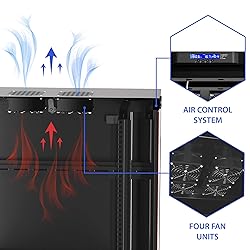 *** 12U 35-inch Depth Server Rack Cabinet with Accessories - 31-Inch internal USABLE depth *** Fits the 19" standard equipment up to 31-inch total depth. The Smart Air-Ventilation Features is an effective feature to maintain the optimal working (safe) regime inside the network rack cabinet *** 8-way Power Distribution Unit - LCD Screen with Thermostat and THERMOSENSOR - 2 X Fans - Dust-tight Cable Entries - U-Mark Adjustable for up to 31" apart Vertical Rails - Shelf - Casters - Cage Buts/Screws - Vnetd Rear Door *** Dimensions (external): 12U (24"w x35"d x31"h) - Weight Capacity: 220 Lbs - Color: Black - Door Type: Front-Glass / Rear-Solid - Weight: 90 Lbs - Type: Floor Standing - Frame Thickness: 1.2mm, Vertical Rails - 2mm - Powder paint with degreasing and anticorrosive phosphate *** Compatibility with Servers, Networking, Telecom and other IT equipment - Easy Installation and set-up - Supplied Flat Package - Must-Have Accessories Included- Sturdy Construction and Elegant Look - Wide range of application from musical equipment rack or a home server (SOHO Projects) to professional Data Center cooling racks. The construction allows delivery and mounting a rack in tight rooms with narrow doorways access without cargo elevators. Reliable Technologies and Quality Parts - We offer a large selection of professional small server rack solutions and Accessories - Available in 6U, 9U, 12U, 15U, 18U, 22U, 27U, 32U, 37U, 42U ***