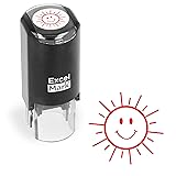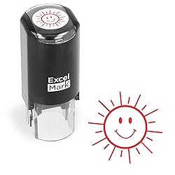 ExcelMark Happy Sun - Round Self-Inking Teacher Stamp - Red Ink