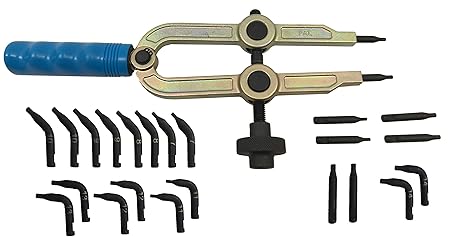 Safest and the strongest tool for lock ring service Hold single handle then adjust screw mechanism to control forged jaws to remove and install lock rings securely and quickly Services cv shaft, wheel hub, axle shaft, cam shaft, etc Includes 12 pairs of tips: 2.5mm (straight, 45 degree, 90 degree) 3mm (straight, 45 degree, 90 degree) 3.5mm (straight, 45 degree, 90 degree) 3.8mm (straight, 45 degree, 90 degree) OAL: 12"/30cm, Packed in a blow-mold case