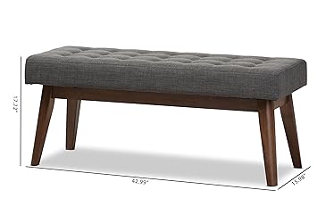 Mid-century seating Bench Polyester fabric upholstery Finishing: dark walnut Overly padded Seat Cushion Button-tufting design