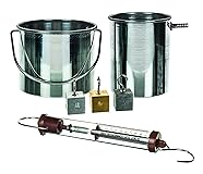 Included in kit: (1) Newton/Gram scale dynamometer, (1) Aluminum Displacement Vessel, (1) Aluminum Catch Bucket with handle, (1) 0.75inch iron cube with hook, (1) 0.75in copper cube with hook, (1) 0.75in aluminum cube with hook NOT included: Instructions, metalware stands. We recommend using the Eisco Labs MTST1 set for building a specific gravity or buoyancy experiment Dynamometer has a max of 1N/100g and a graduations of .02N/2g The AL displacement vessel is 130mm in height, 110mm diameter, and the spout length is 30mm. The catch bucket is 4 inches in diameter, 3.15 inches in height and has a handle A great kit full of tough to find components that work together to teach density and specific gravity