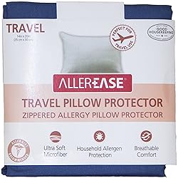 Microfiber Imported ADVANCED ALLERGY PROTECTION: AllerEase pillow protectors have tightly woven, expertly-designed fabric to prevent unhealthy household particles from collecting in your pillow. EXTEND PILLOW LIFE: Fully encasing your pillow with a durable and comfortable zippered protector extends the life of your pillow by keeping it fresh and clean. TRAVEL PILLOW COVER: The AllerEase Travel Pillow Protector is an ultra-soft pillow cover that makes it easy to bring comfort and allergy protection with you on your next trip. Please note that this is a pillow cover only – pillow is not included. PERFECT SIZE: The 14” x 20” pillow protector has a zippered closure that fully encases the travel pillow. You and your family will sleep better, feel better and wake up feeling refreshed and well-rested – wherever you are.