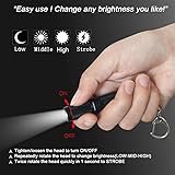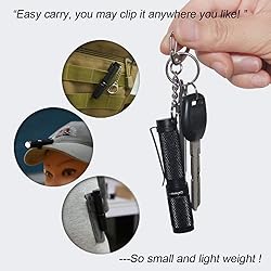 【MINI SMALL BRIGHT KEYCHAIN LIGHT】this mini small flashlight is tiny smaller than your pinkie, but high bright 150 lumens and 3 modes low middle high brightness. So this micro flashlight is a nice EDC AAA keychain flashlight with your everyday life 【PORTABLE MULTIPURPOSE KEYCHAIN FLASHLIGHT】this mini keychain flashlight is easy to clip everywhere you want (such as handheld,clip on your key, coat pocket, cap, bag, backpack or outdoor camp,tree, and as candle on the table), plusing the diffuser work as candle,camp lamp,hat light. Nice for indoor or outdoor portable pocket light 【RELIABLE AND WATERPROOF 】the mini keychain flashlight is machined from aluminium alloy with type Ⅲ anodizd coating and waterproof. The multipurposeto mini flashlight is convenient to use in most enviroments 【 EASY TO USE】This mini flashlight powered by one AAA alkaline or rechargeable AAA Ni-Mh battery is easy to get and use , just twist the head for on/off,rotate from low middle high brightness output, easily operated by one hand or two fingers. So the tiny mini AAA flashlight is nice for everyday EDC,dog walking,dark reading,camping,hiking,backpacking or Emergency 【GIFT PACKAGE YOU MAY GET】a mini K3 keychain flashlight,a nice diffuser,an easy keychain,a pocket hat clip,all in a nice package gift box. So this multipurpose mini flashlight is very nice gift for family kids parents or friends birthday Christmas,Valentine’s Day,Mother’s Day,Father’s Day gifts