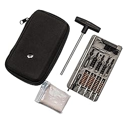 COMPATIBLE: Works with .22, 9mm, .357, .38, .40, 10mm, .44, .45 caliber handguns DEPENDABLE: Perfect for having on hand during matches, while hunting or at the range in case of a malfunction or if a quick cleaning is necessary to keep shooting CONVENIENT: Sized to fit into small compartments such as magazine pouches or range bags DURABLE: Semi-rigid carry case provides protection to the supplies while in transpor INCLUDES: Multiple Wire And Plastic Brushes And Cleaning Patches GUARANTEED: This product is covered by a Limited Lifetime Warranty. For questions or contact us on the Smith & Wesson website