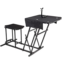 【300LBS Weight Capacity】All steel frames adds the stability of this shooting table, the weight capacity is up to 300lbs. Powder coasted design ensures the frames will not get rusty, perfect for outdoor using. 【Height Adjustable】The height of table and the shooting rest can be easy adjusted, which makes this shooting table is suitable for adults or youths, men or women, and also convenient for any landscapes. 【Large Shooting Bench with Ammo Pockets 】24"x 24" shooting platform provides enough operating space for gun and arms while shooting. Besides, there are two pockets for ammos and other accessories. 【Foldable Portable Design】This shooting table allows be folded compactly, which is convenient for storage. For the 35lbs light weight you can carry this table to where you want. 【Padded Hunting Seat】The shooting bench is equipped with padded hunting seat for add comfort, which is suitable for hunting and outdoor use.