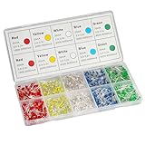 Head Type: Round; Head Diameter: 3mm; Pin Length: 18 mm. Forward Voltage: R/Y 2.0-2.2V; B/G/W 3.0-3.2V; Max. Current: 20mA. Excellent Quality: Every LED is examined rigidly before packaging. Colored Lens: You can distinguish LED’s light color quickly by its colored lens. The color of lens is the color of emitting light. Kit Box for Storage: Don't worry you will mix them up or lose them. All different types of super bright diodes are separated in a neat kit box and labeled clearly. Wide Application: You can use them to do DIY LED Projects, School Science Experiments, Car Decorations, Electronic and Electrical Experiments, etc.