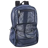 Trail maker Deluxe Mesh Backpack with Bungee Cord & Adjustable Padded Straps, for Swimming, School, Travel (Navy)